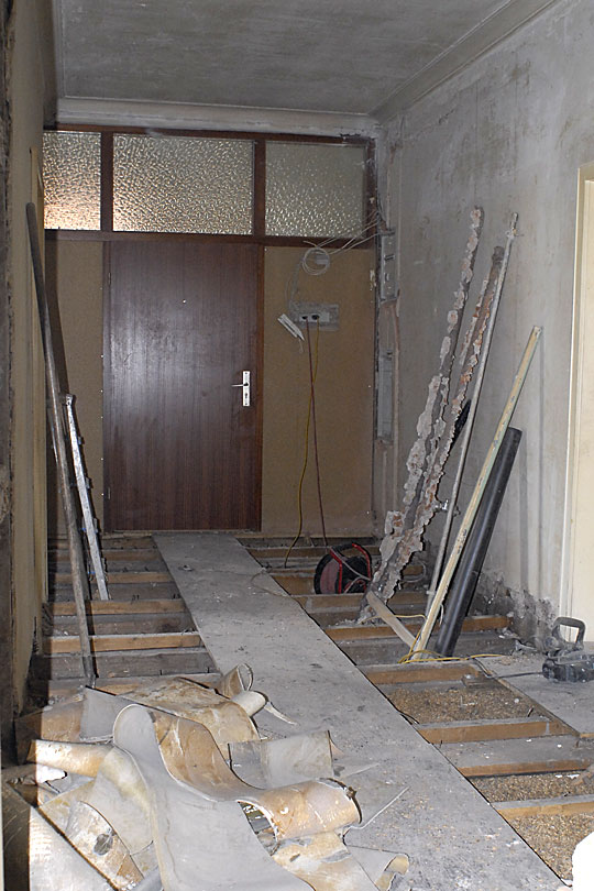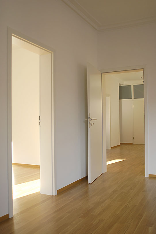 Alle Oberflächen wurden überarbeitet. Die Chance wurde genutzt, auch den Schallschutz der Wohnungen deutlich zu verbessern. Unter anderem wurden daher die Bodenbeläge samt Ihrer Unterkonstruktion neu aufgebaut und dabei neu nivelliert.