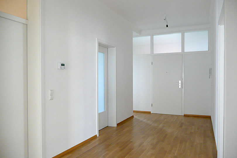 Der Flur einer größeren Wohnung bei der ersten Begehung.