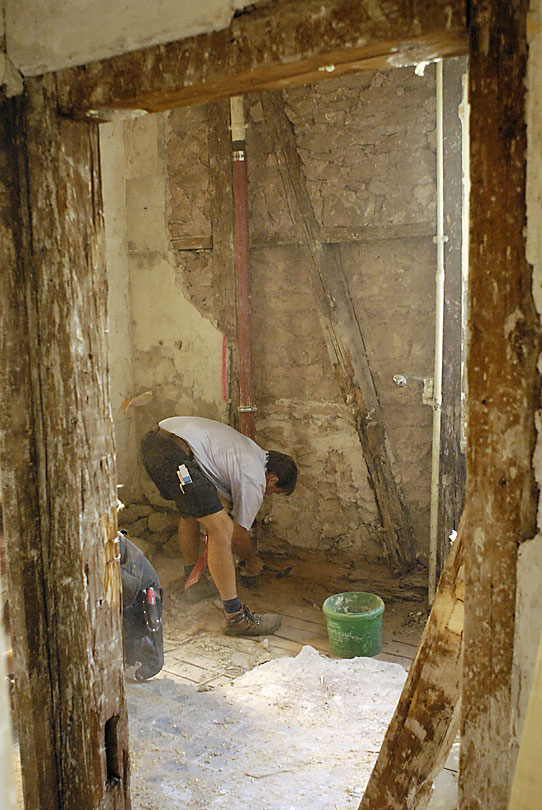 Der gleiche Blick nach den Abbruchmaßnahmen. Im Hintergrund ist bereits das für die Sanierung freigelegte Fachwerk zu sehen.